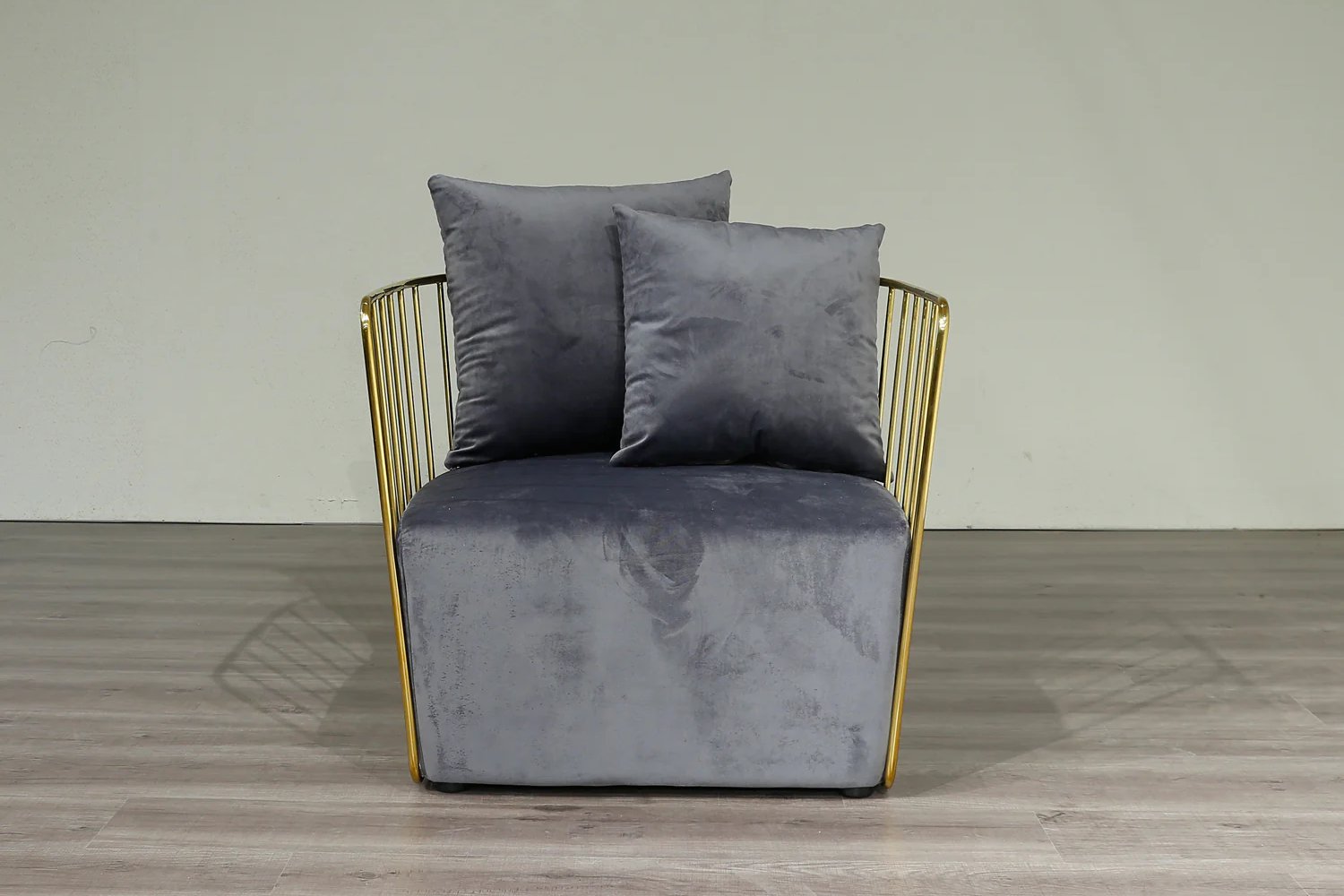 Gold Round Frame & Grey Velvet Arm Chair Accent Chair in stock