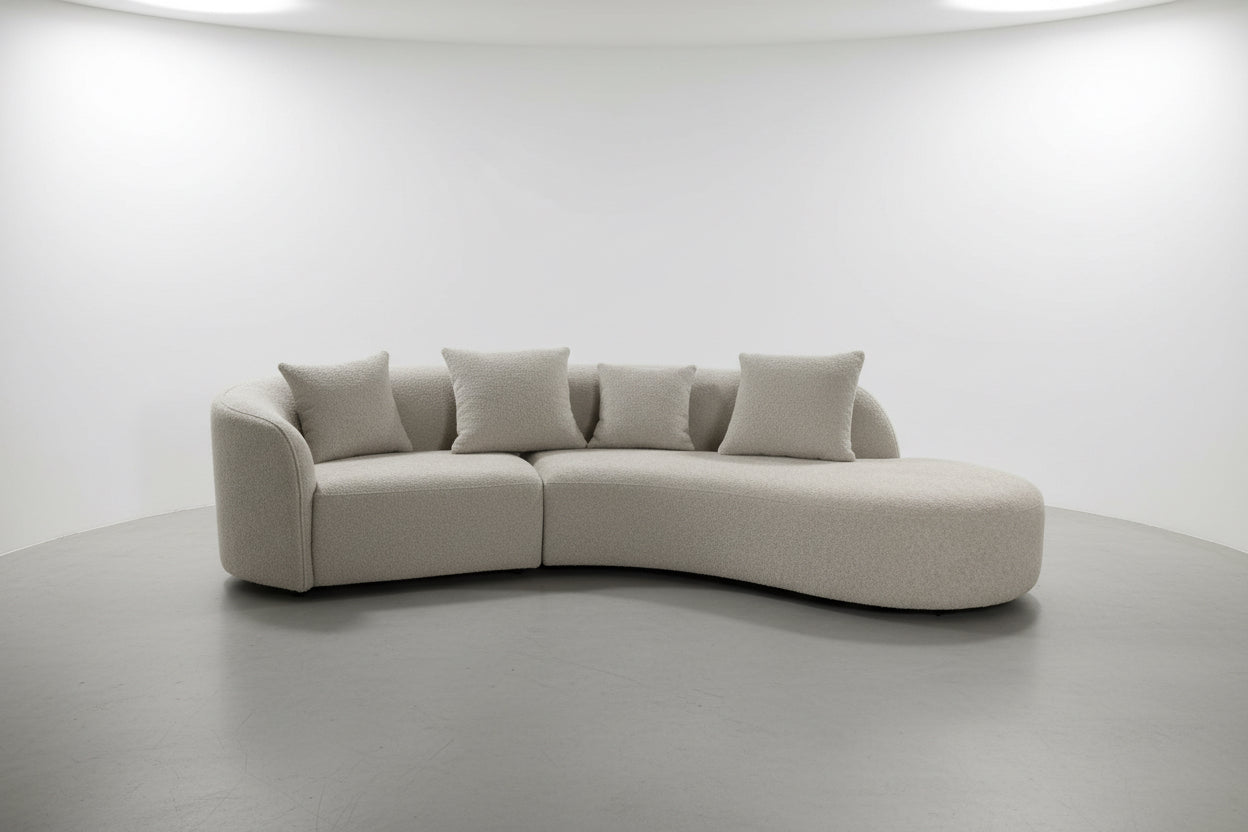 • Large Curved 3 Seater Sofa Light Grey Boucle Made To Order FREE UK Delivery